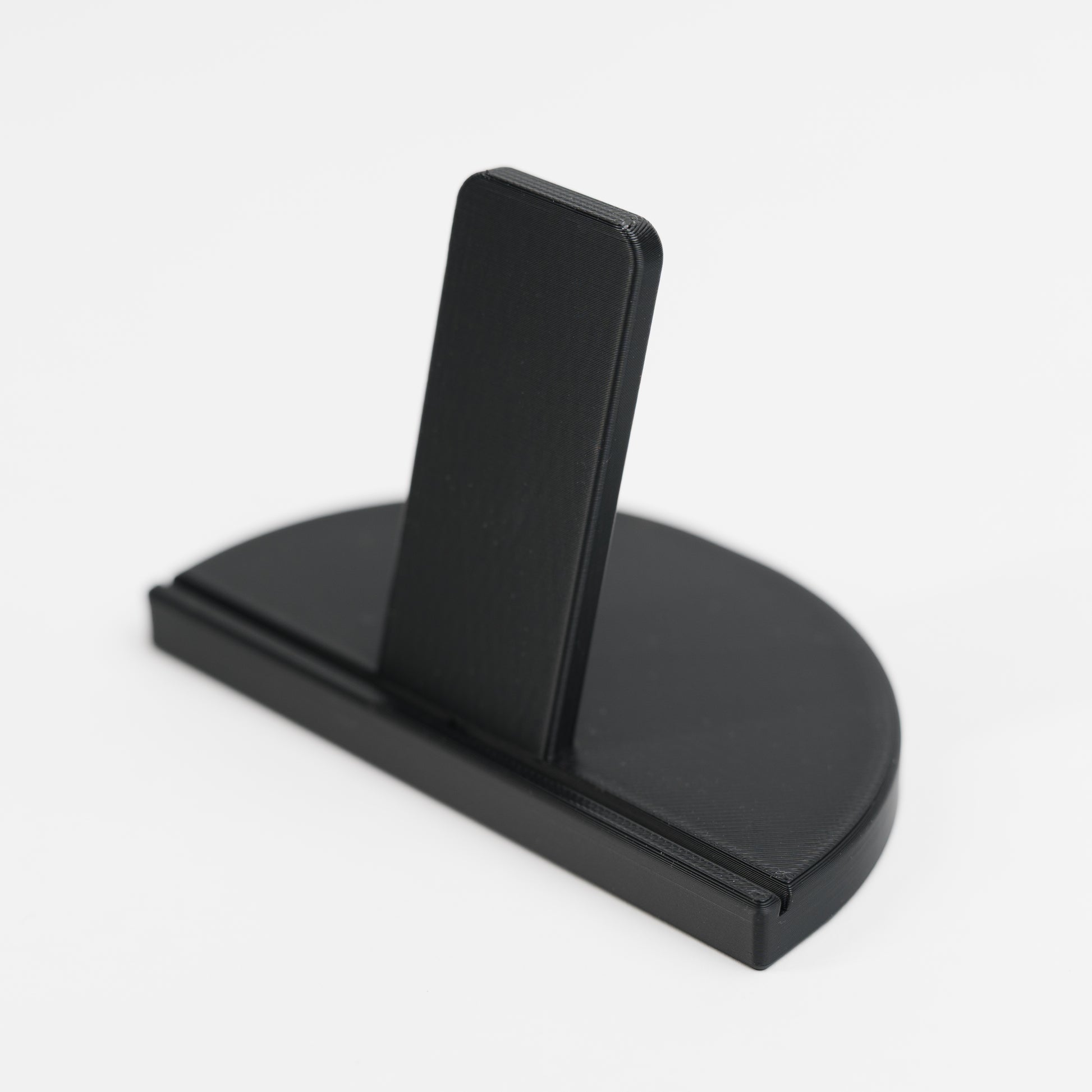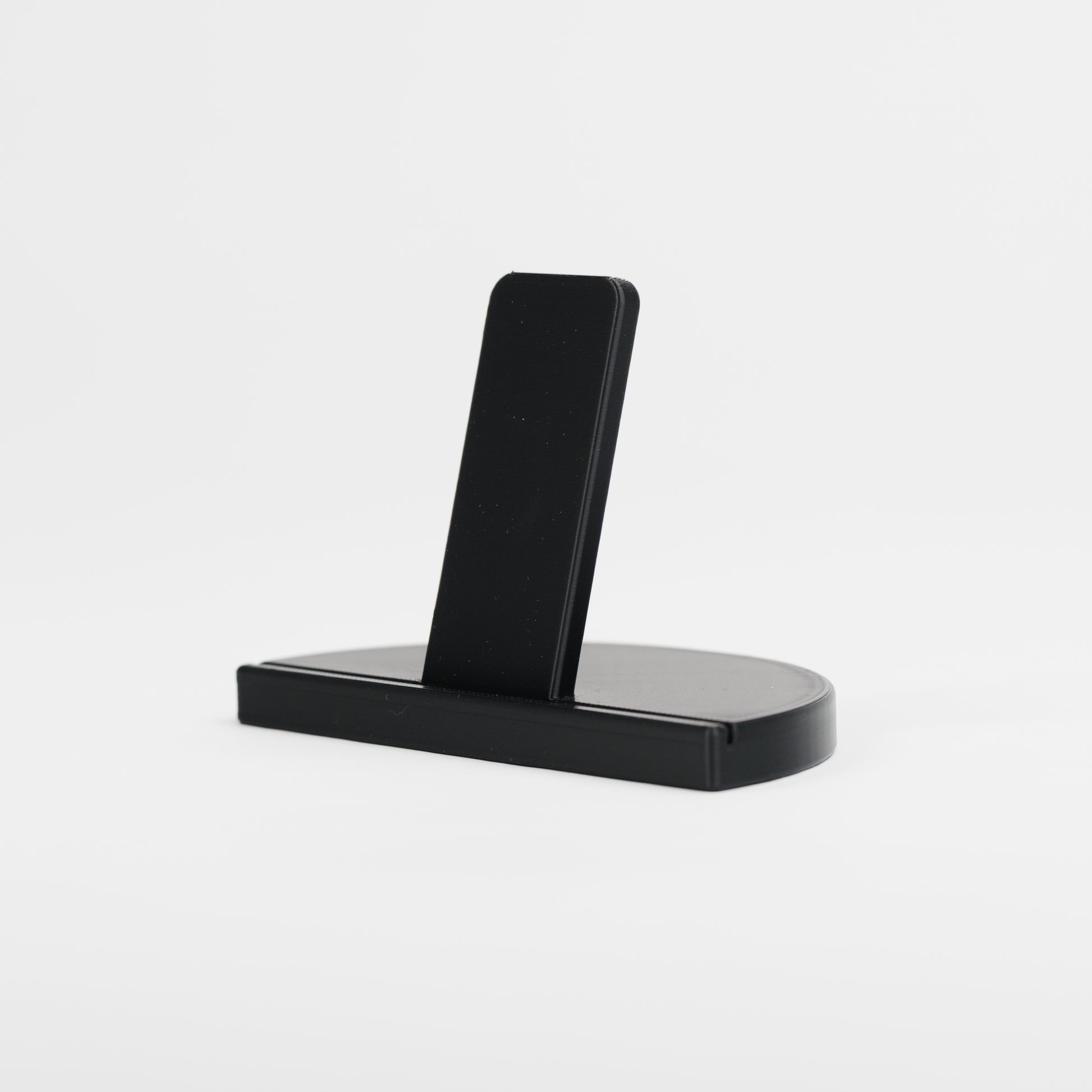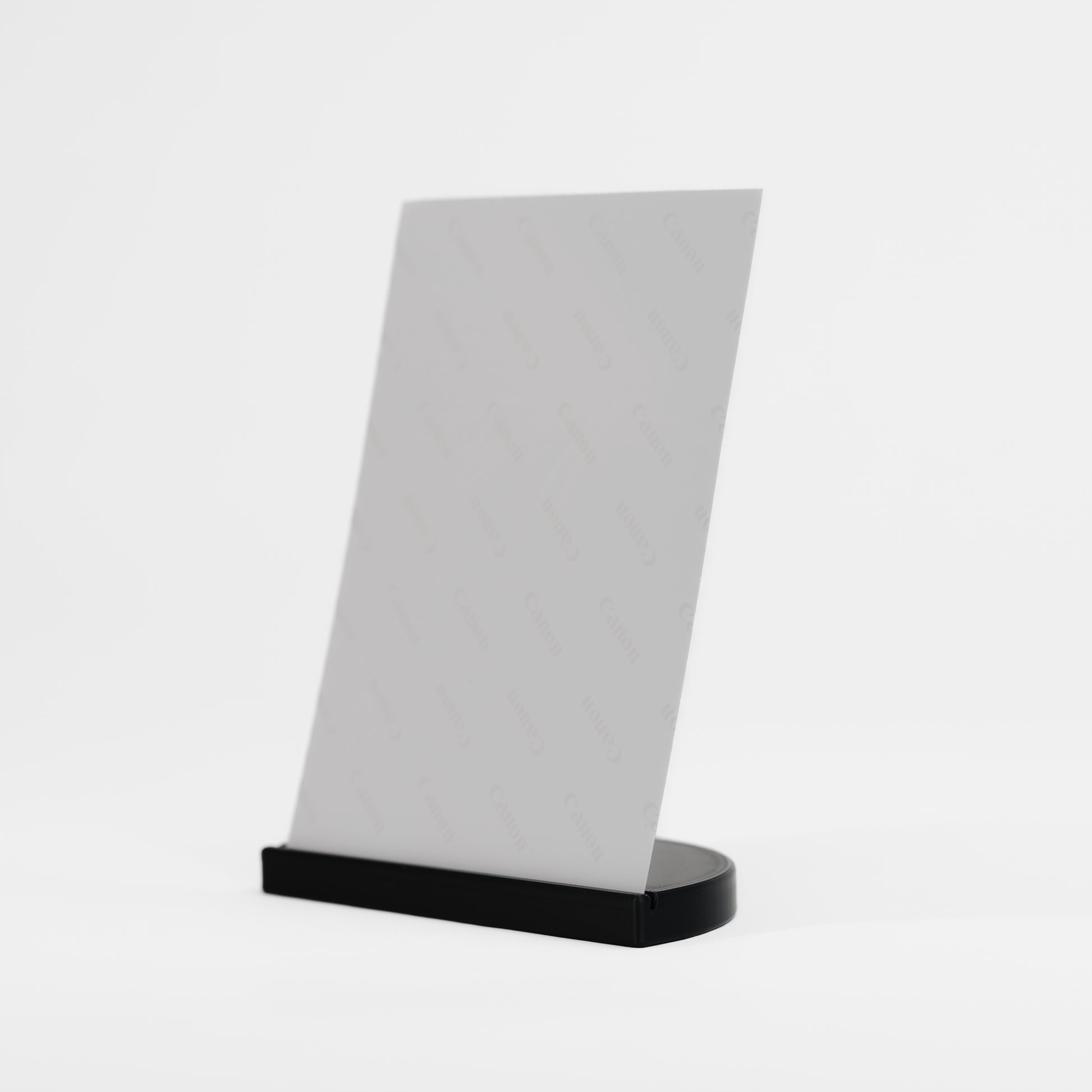 A minimalist display stand designed for Canon Selphy prints. Fits standard 4x6 photos in either portrait or landscape orientation with a stable easel base and subtle groove for security.