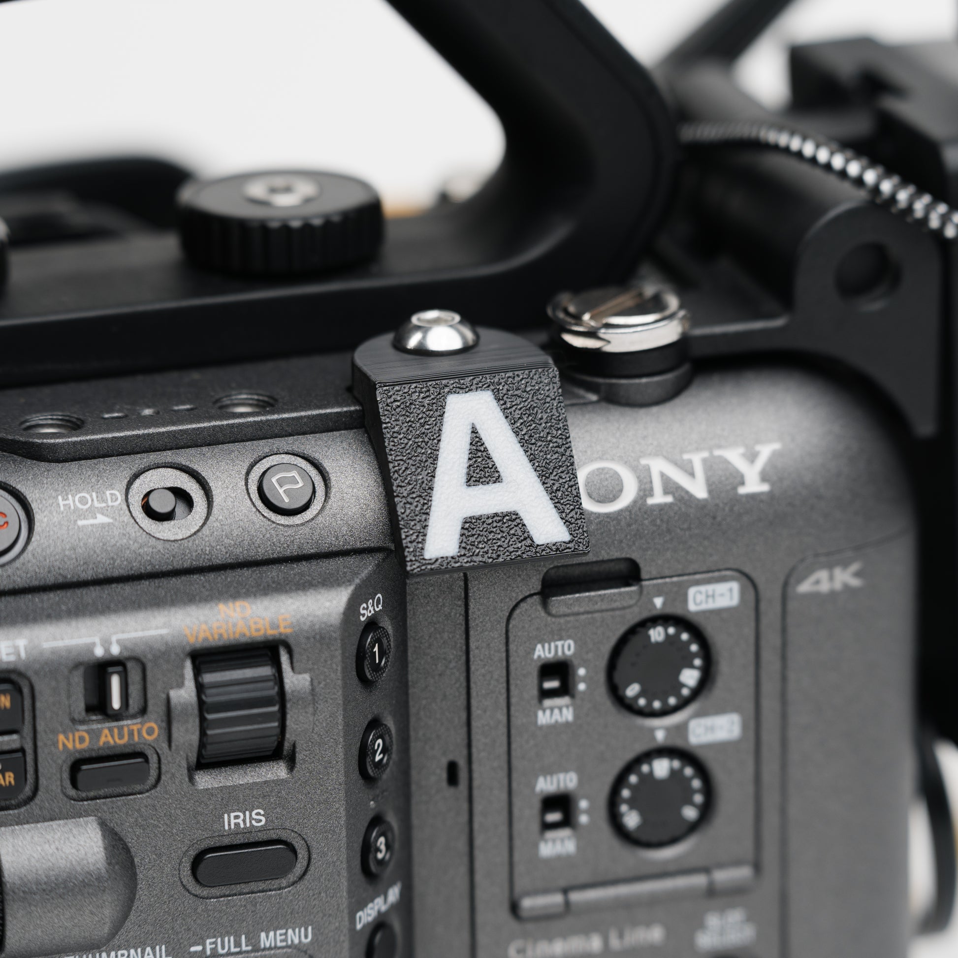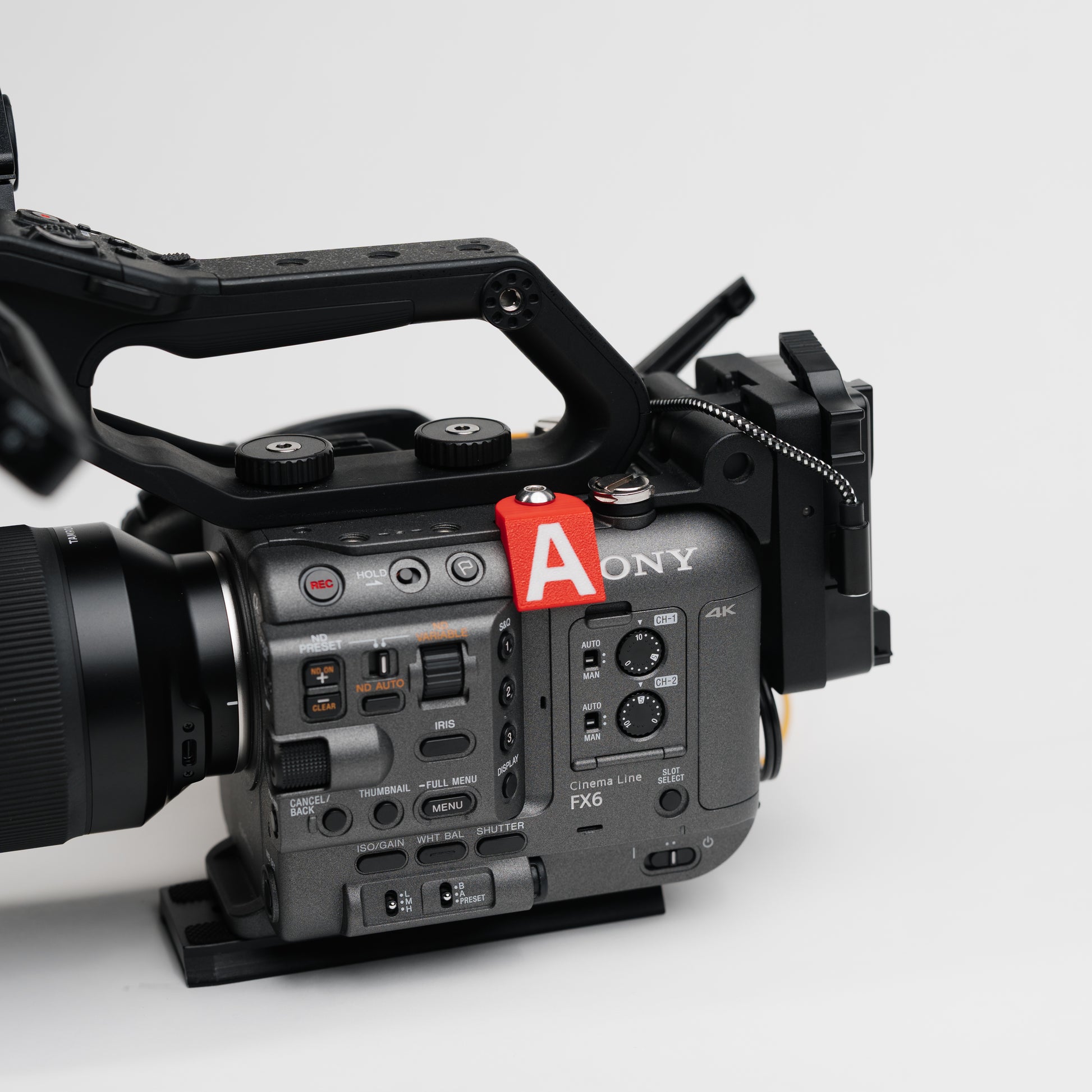 Keep your multi-camera shoots organized with these custom-fit camera ID tags for the Sony FX6. Each tag screws into the camera via the 1/4-20 mount and provides bold, easy-to-read lettering. Available in two color sets (Black/White or Red/Blue/Green/Yellow), these tags make it simple to identify Camera A, B, C, or D at a glance — even in fast-paced production environments.